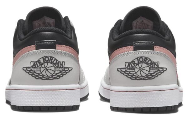 The Air Jordan 1 Low “Grey Fog Bleached Coral” is a stylish sneaker that combines black, grey, bleached coral, and white for a unique look. The sneaker features a white toe box, black side panels, tongue, laces, lining, Wings logo, and a rubber sole. The highlight of this sneaker is the bleached coral contrast color on the brand area, Swooshes, and stitching along the white midsole. This sneaker is perfect for everyday activities and is sure to make a statement. Inspired by the classic Air Jordan 1 silhouette, this sneaker is a must-have for any sneakerhead.