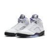 The Air Jordan 5 Retro Concord brings a classic color scheme with a modern twist. It features a sleek white leather upper, TPU netted underlays, and a reflective tongue all contrasted by accents of Concord found on the Jumpman logos, midsole shark teeth, and sockliner. Black is seen on the midsole with an Air cushioning heel unit and semi-translucent icy outsole finishing the design. A must-have for any sneaker fan”s collection, this pair contributes throwback style to any look.
